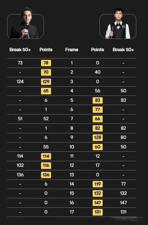 比赛第一阶段前9局,奥沙利文和塔猜亚各自掌控半局比赛,前4局一上来,火箭奥沙利文就凭借心态和经验的优势斩获4连鞭,大比分4比0领先。但中场休息回来,泰国选手塔猜亚火力全开,塔猜亚连下5局,最终一阶段战报塔猜亚5比4逆转领先火箭奥沙利文1局。
